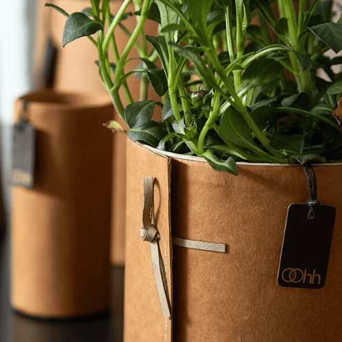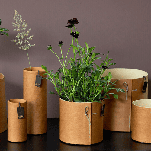 Imaginez un pot en papier recyclé simple et façonné à la main, qui allie l’élégance de la matière recyclée et la praticité imperméable.